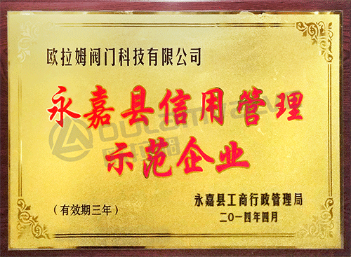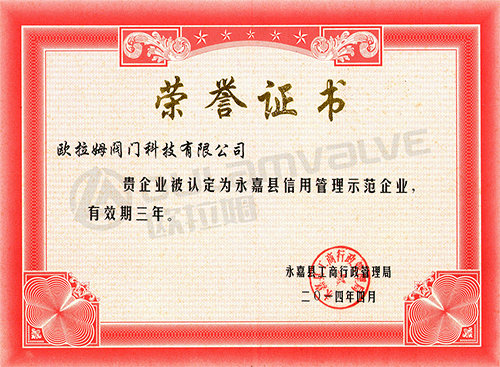 永嘉縣信用管理示范企業證書