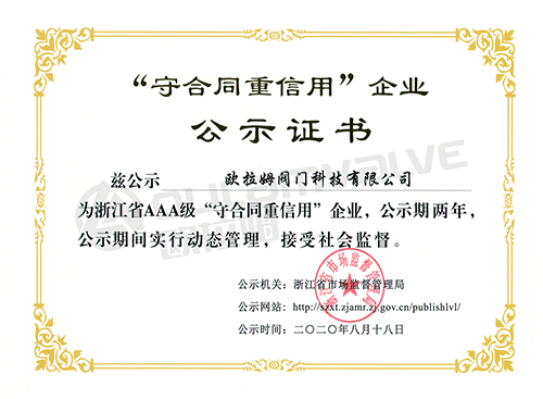 浙江省AAA級守合同重信用企業(yè)證書